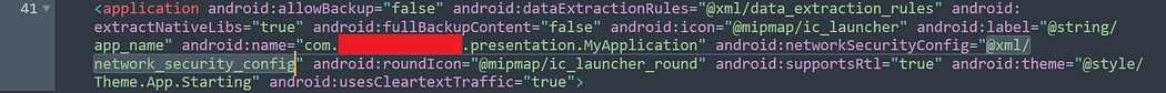Modify the AndroidManifest.xml file located in the root of the reversed application folder, and add the following attribute in the <application> tag of the Manifest file. android:networkSecurityConfig=”@xml/network_security_config” If the network_security_config.xml was already present in the /res/xml/ directory then you don’t have to add this attribute as it would have been already there in the Manifest file but you can double-check.