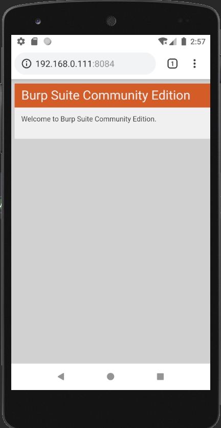 5. To verify whether the proxy is working open the Browser from the Android device, and visit http://burp in some cases http://burp might not work so type your PC IPV4 address like this: http://192.168.0.111:8084, if you see this page then your proxy is working.