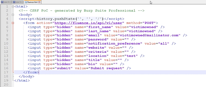 Some researchers also submit the GET request of the vulnerable link which is useless because it will not show the vulnerable form in it. Only submit the POST one (request no 5106 here) and delete rest of the junk requests from HTTP history. Second step, before submitting the exploitation request take a screenshot of the victim’s profile page (in Chrome). Here we’ve to configure burpsuite with chrome too because we’re using two browsers with two different accounts to exploit the vulnerability. You might encounter certificate errors with chrome so just export it manually because http://burp doesn’t work in some cases. For exploit right click on vulnerable request → Engagement tools → Generate CSRF PoC and save it as HTML [below] or you can manually write the exploit with takeover info.
